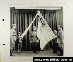 Серед архівних документів є і чорно-біле зображення прапора гетьманців того періоду. Напис на світлині свідчить про те, що це «Прапор 6 Коша І округу Союзу Гетьманців Державників, Судбури, Онтаріо, Канада. Посвячений дня 17 листопада 1935 р. в укр.. католицькій церкві» (ГДА СЗР України. – Ф. 1. – Спр. № 7242.– Т. 16. – Арк. 380). Усі учасники цього посвячення в однострої і мають урочистий вигляд.