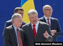 Болтон відвідав Київ у День Незалежності України 24 серпня, щоб продемонструвати підтримку Вашингтона Києву. Виступаючи перед пресою в Україні, Болтон відзначив, що для нього є честю брати участь у святкуваннях із нагоди незалежності, і наголосив на підтримці України з боку США, зокрема щодо невизнання незаконної анексії Криму Росією, а також відзначив поступ України на шляху вступу до НАТО, однак зауважив, що Україні ще багато потрібно зробити в цій сфері.