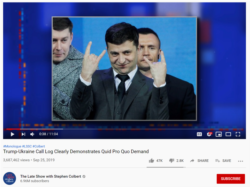 Американські ведучі лейт-найт програм отримали нову тему для жартів із початком процедури імпічменту президента Сполучених Штатів Дональда Трампа. Об’єктом цих дотепів став не тільки сам мешканець Білого дому, а й президент України Володимир Зеленський. Коміки висміювали заяви Трампа про «невинність» телефонної розмови, яка спричинила скандал, та продовжують кепкувати зі слухань у Конгресі. Радіо Свобода зібрало згадки про Україну та її президента з найвідоміших американських лейт-найт шоу.