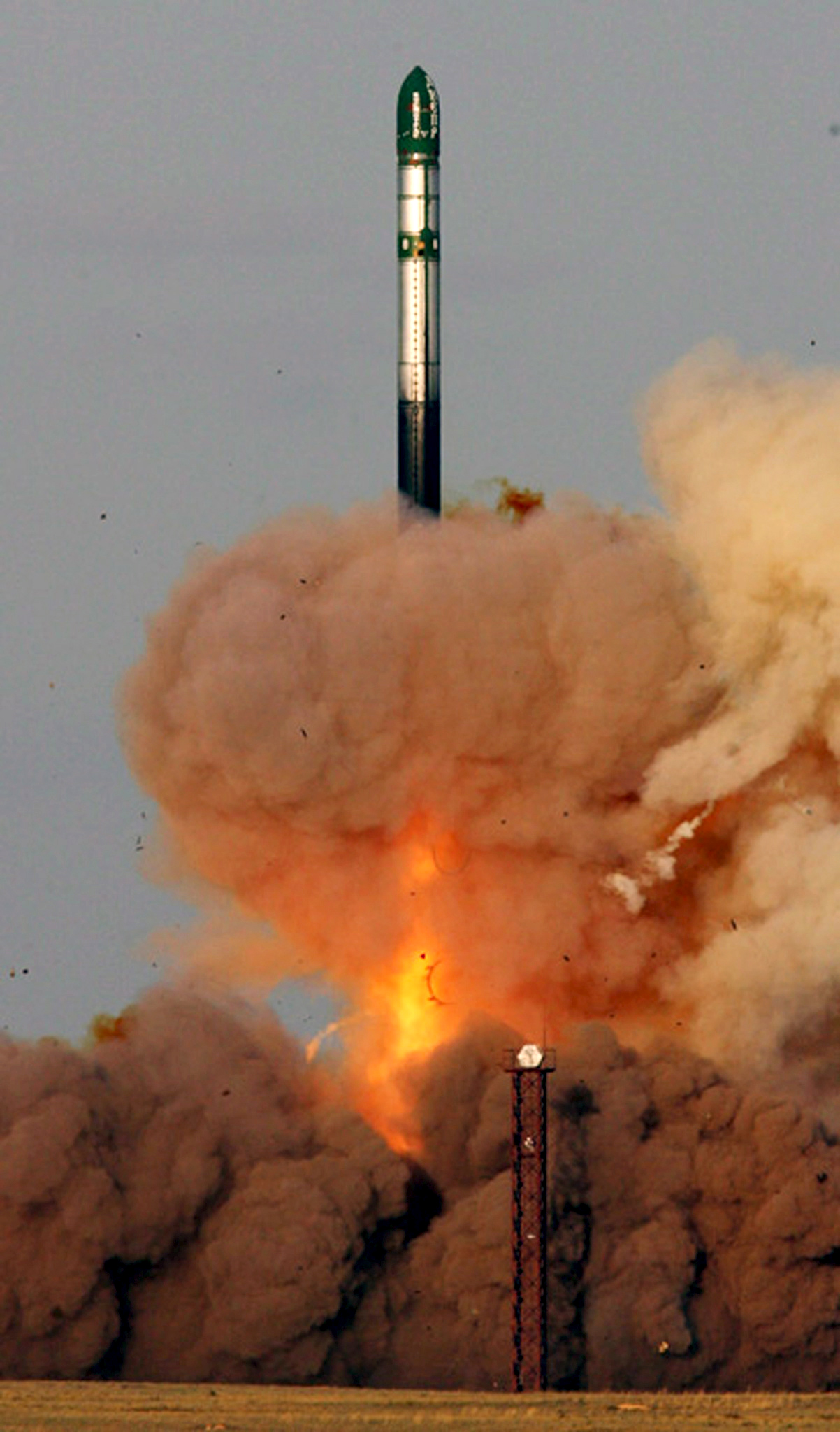 На фото запуск ракети PC-20 (SS-18 Satan) в Уралі, 12 липня 2006 року