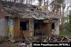 Сергій Олійник (ліворуч) оглядає збитки від військ РФ