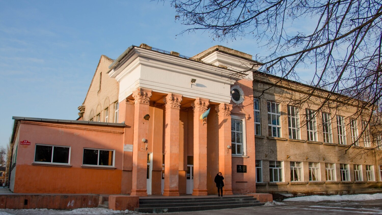 Двоповерхова яскрава будівля з колонами на вході та високими стелями всередині. У кабінеті, де вчать вірменську, на стінах українська символіка, а на шафі – невеликий вірменський прапор.
