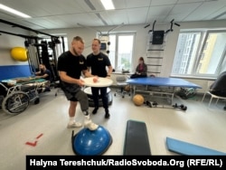 Заняття із фізичним терапевтом супроводжуються постійними жартами між Михайлом Тернавським та Андрієм Новосадом.