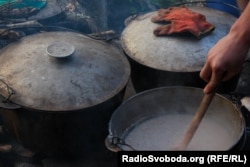 «Сьогодні буде банош – традиційна гуцульська страва», – коментує він процес роботи. Дмитро вже вдруге в БУРі, але в Карпатах уперше.