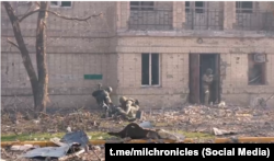 Момент перебігання вулиці морпіхами 810-ї обрмп у Маріуполі перед смертельним пораненням кулеметника Максима Старовойтова, 21 квітня