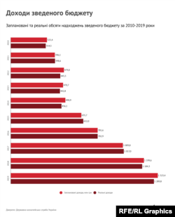 Згідно з даними Держказначейства, реальні доходи зведеного бюджету (тобто державного і місцевих бюджетів разом) останні два роки відчутно поступалися запланованим.