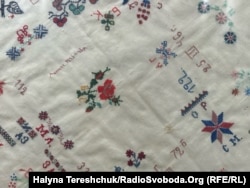 А ще на цій білій тканині збереглася пам’ять про близько 40 ув’язнених жінок, які сиділи в камері разом із музиканткою. Хтось вишив ноти, хтось зробив мережку, відтворив фрагмент узору хрестиком, низинкою, мережкою.