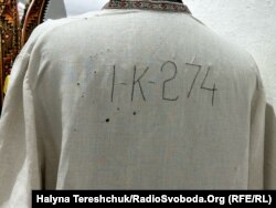 Серед експонатів – дві роботи Іванни Кальмук. Вона спершу перебувала в ув’язненні на Лонцького і тут на невеликому шматку тканини вишила квіти і слова – «Коханій матусі». Продовжила роботу вже на засланні. Також збереглася її сорочка, вишита низинкою, з її ініціалами «І.К» і табірний номер 274.