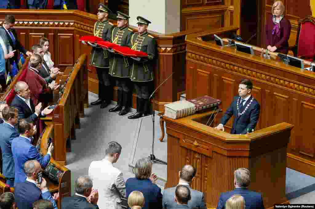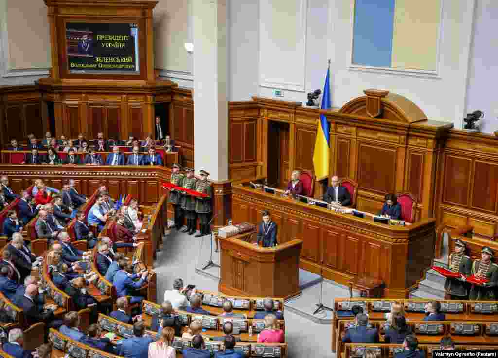 Володимир Зеленський офіційно став президентом України. У квітні він здобув перемогу в другому турі виборів президента, отримавши 73,22% голосів. П'ятий президент України Петро Порошенко мав 24,45%. Після час інавгурації шостий президент вже виголосив промову щодо перших своїх кроків та заявив, що розпускає Верховну Раду України.