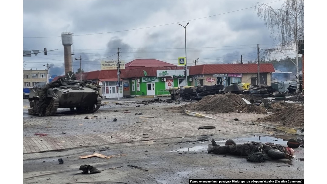 Знищена російська бронетехніка на вулиці в Бучі, 2 квітня 2022 року